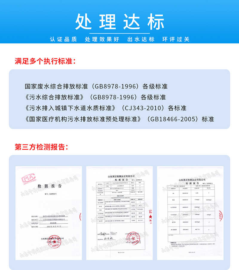 8、處理效果好:廢水處理量大、處理速度快、處理效果好,符合國家排放標準,可直接排入市政排污管網。